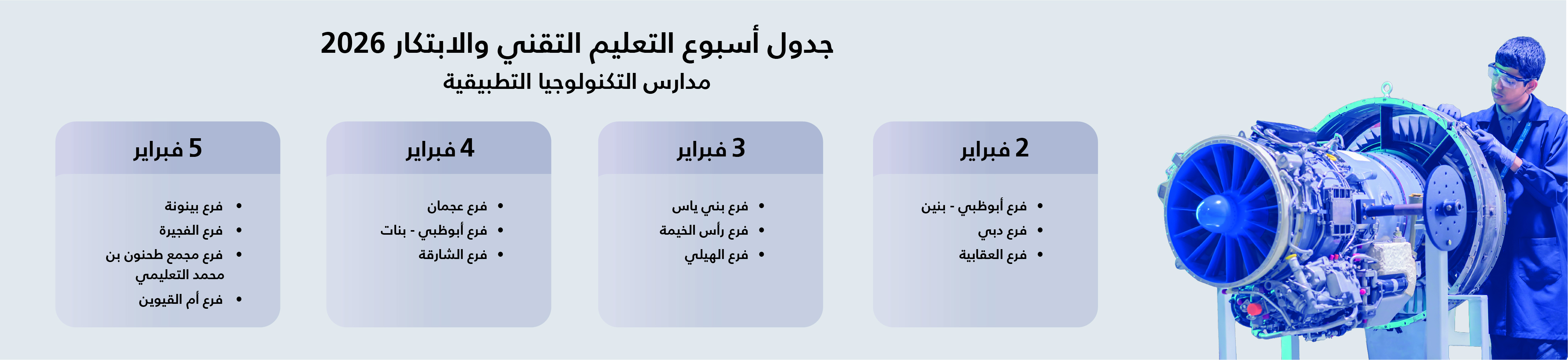 يعد أسبوع التعليم التقني والابتكار فرصة فريدة للطلبة للحصول على أحدث المعلومات حول البرامج والمهن الجديدة في مجال التعليم والتدريب التقني والمهني، وذلك من خلال حضور الطلبة للمعارض المصغرة، وورش العمل، والندوات المتنوعة والتي تعقد في المؤسسات التعليمية لمركز أبوظبي للتعليم والتدريب التقني والمهني. في مختلف مناطق دولة الإمارات العربية المتحدة.